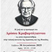 Τιμητική Ημερίδα για τον Δρόσο Κραβαρτόγιαννο στο Πνευματικό Κέντρο Άμφισσας